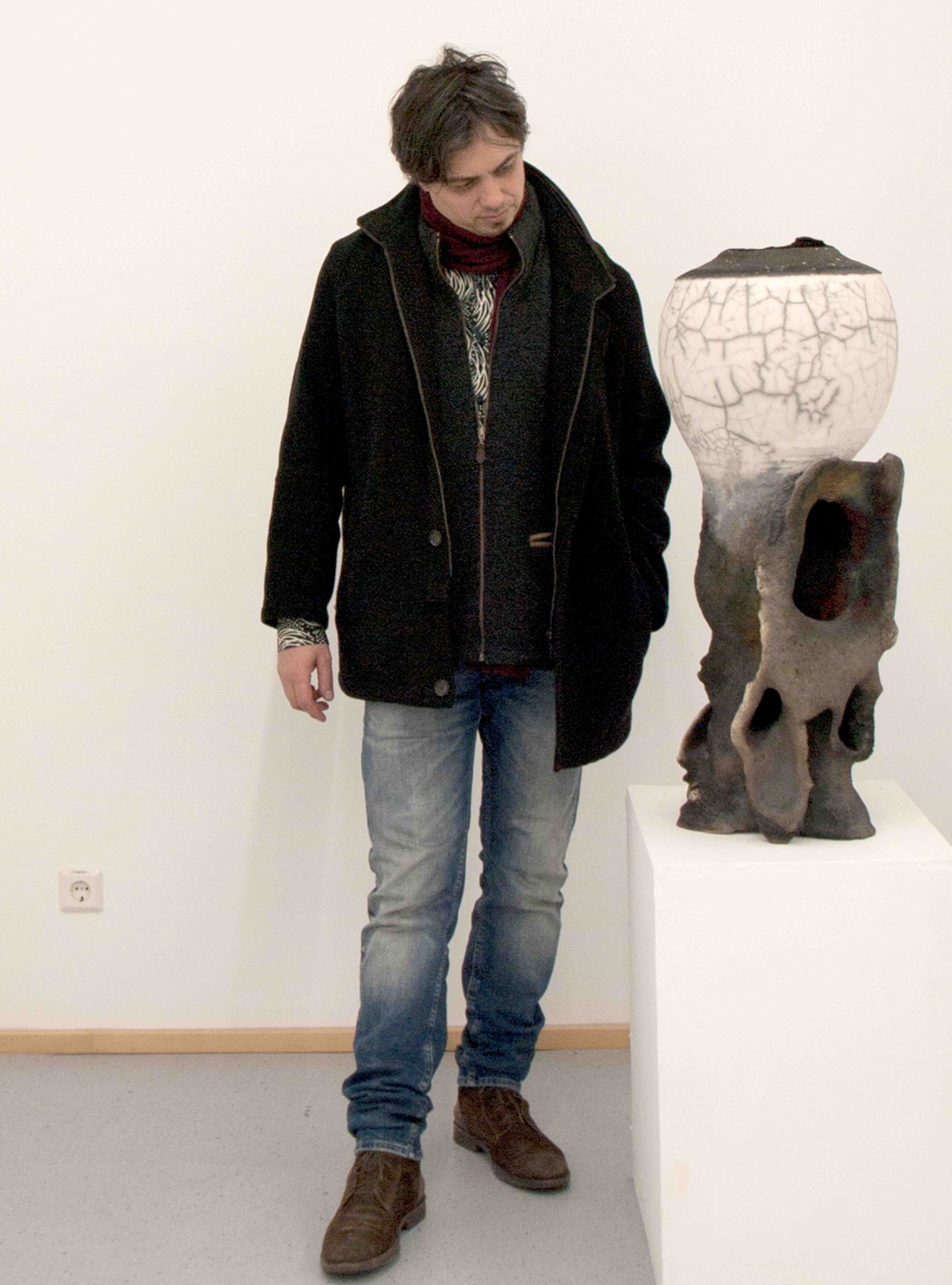 Cross-over von Siebdruck, digitale Bildbearbeitung, Umdruckverfahren und keramischer Dreh- und Aufbauarbeiten. Installative Arrangements von Objektgruppen. Bewegend die Einsicht in das Große, die Unmöglichkeit zur Verständlichkeit und ein Stück gewissenhafter Kitsch.